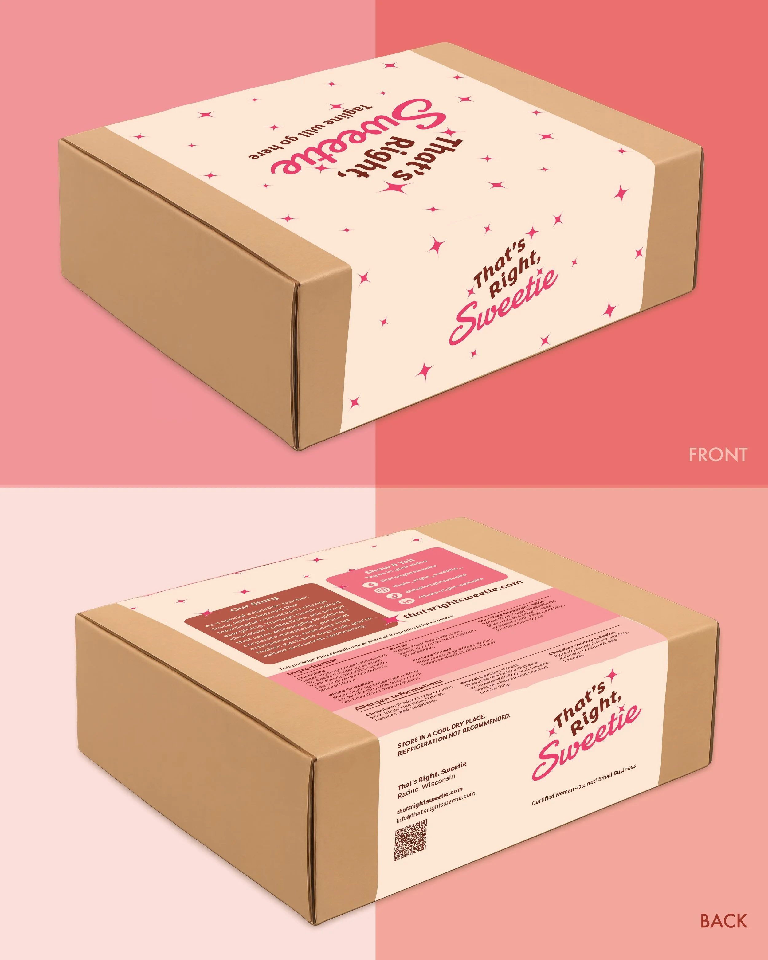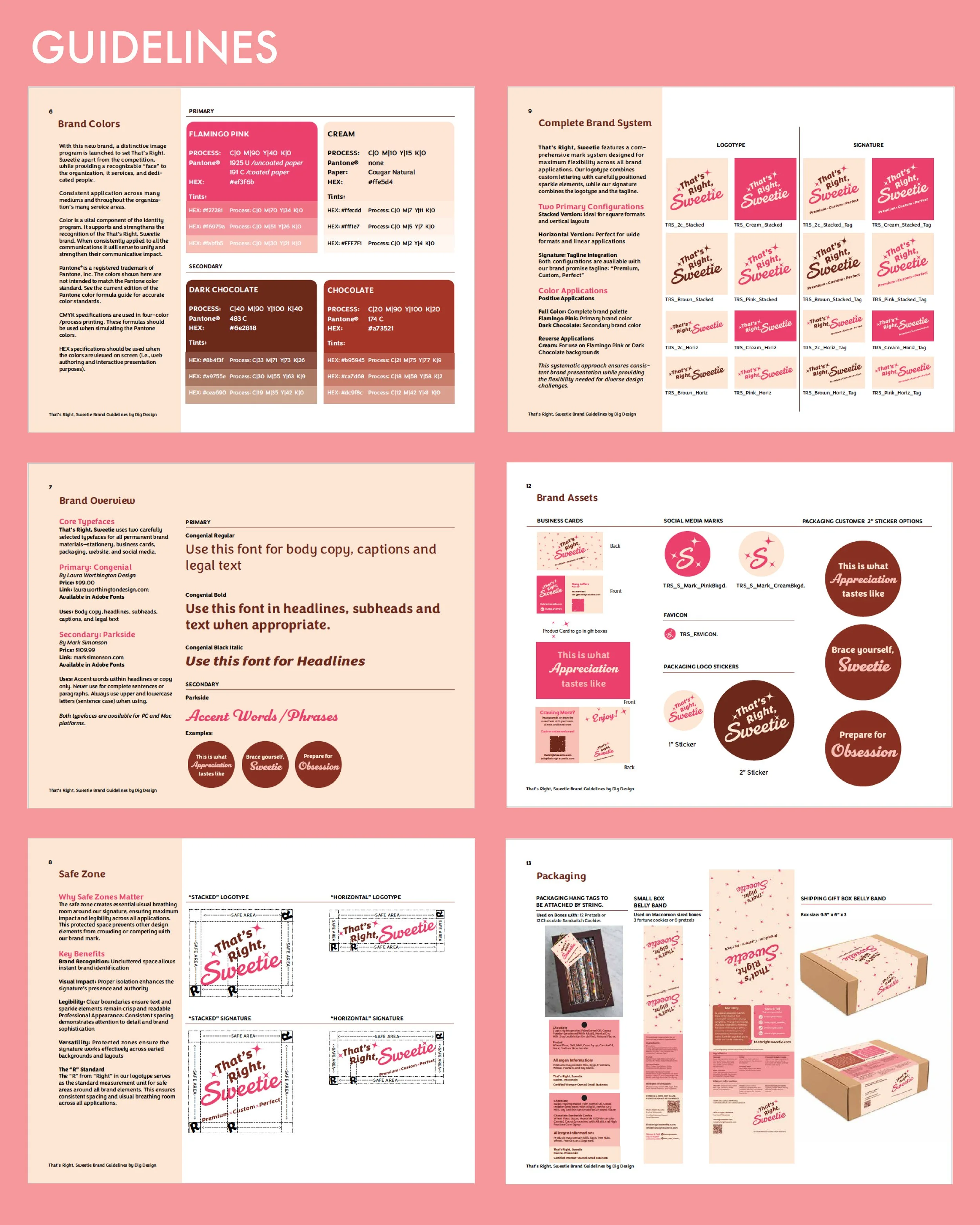 This comprehensive brand identity program launched a distinctive visual system that sets That's Right, Sweetie apart from competitors while providing a recognizable, cohesive “face” for the organization, its services, and its dedicated artisans. From tiny confection stickers to large-format signage, the brand now performs flawlessly at every scale—delivering the premium experience their craftsmanship deserves.